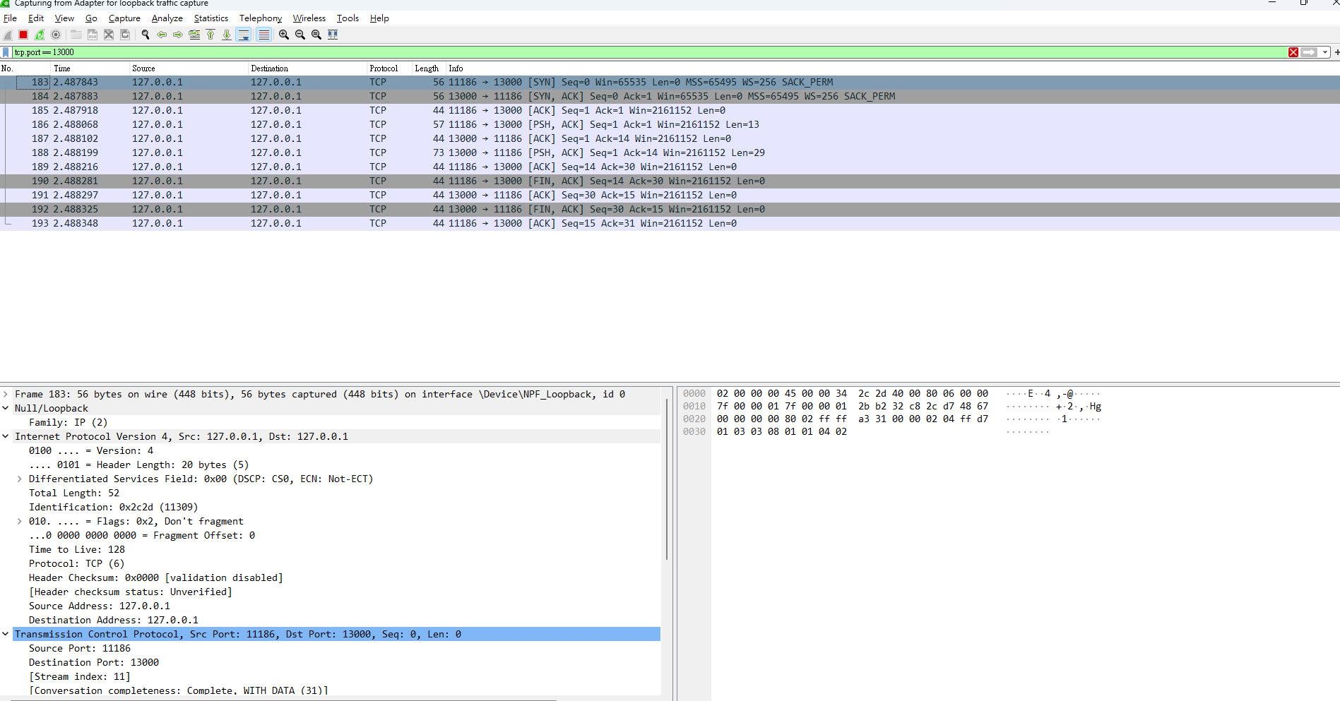 "193","2.488348","127.0.0.1","127.0.0.1","TCP","44","11186 > 13000 [ACK] Seq=15 Ack=31 Win=2161152 Len=0"